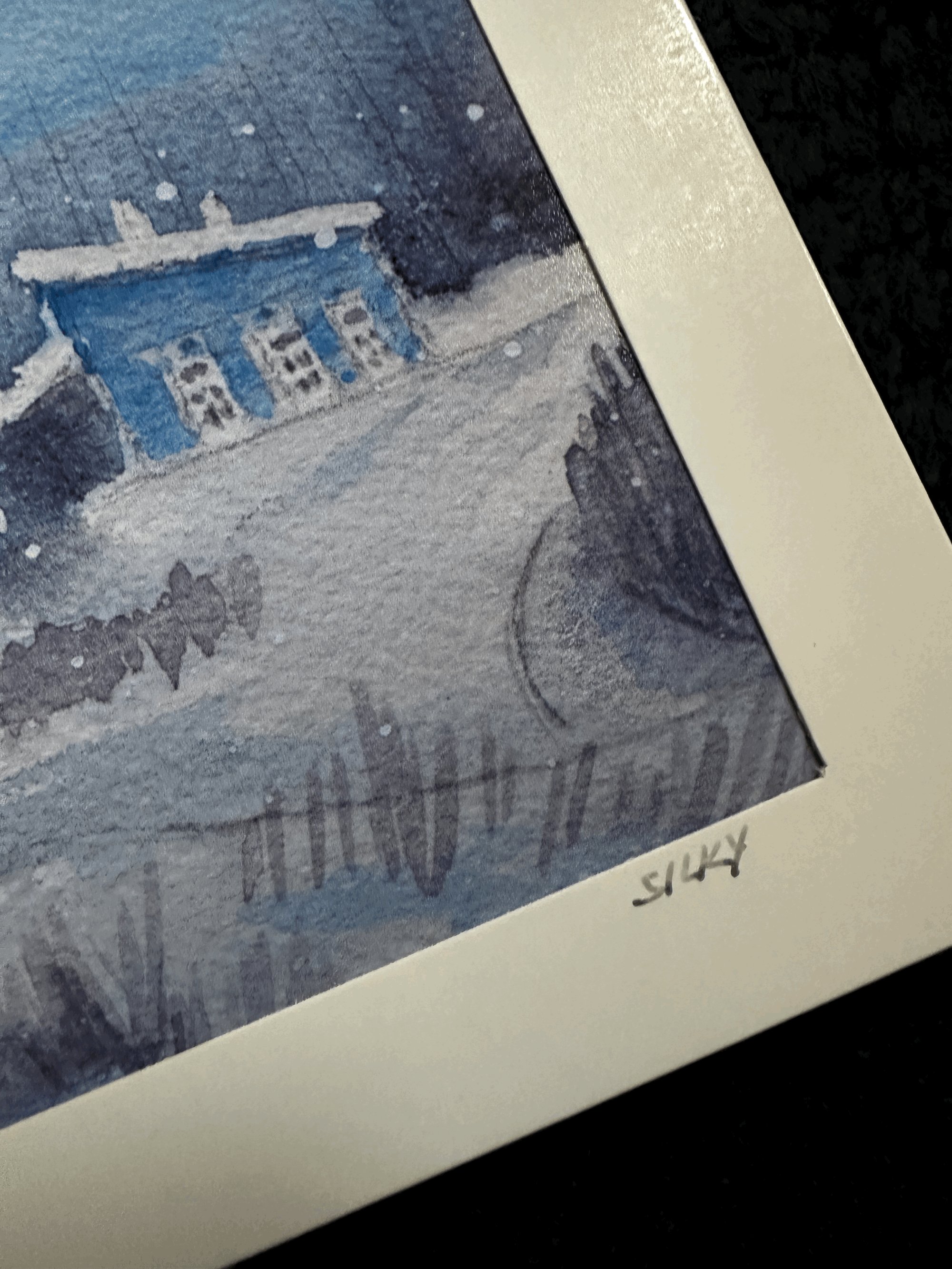 4x6 watercolor print* with a luster finish- mounted in a blank, white 5x7 greeting card with a mat border. Includes envelope. Ready to use as a greeting card or can be inserted into a 5x7 frame. Hand signed on front of card and hand titled on back of card. Watermark will not appear on product.